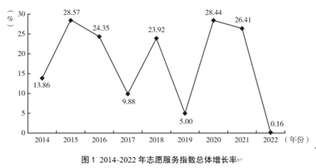 志愿服务时间40.19亿小时,较2021年减少了4.47%。人均志愿服务时间33.41小时,较2021年减少了5.21个小时。