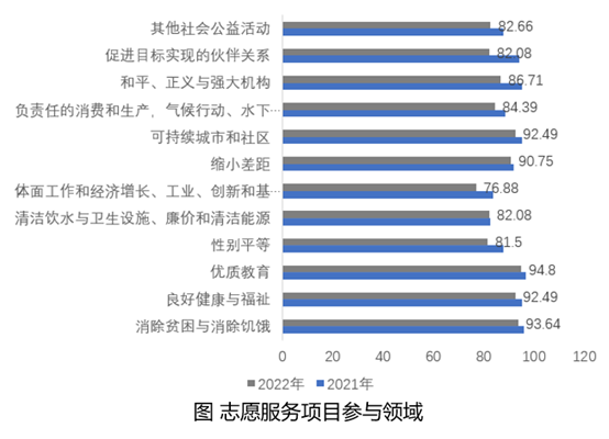 志愿服务项目类型多样,分布均衡,积极响应国家战略,在促进共同富裕、应急救援、基层疫情防控等领域成效显著。