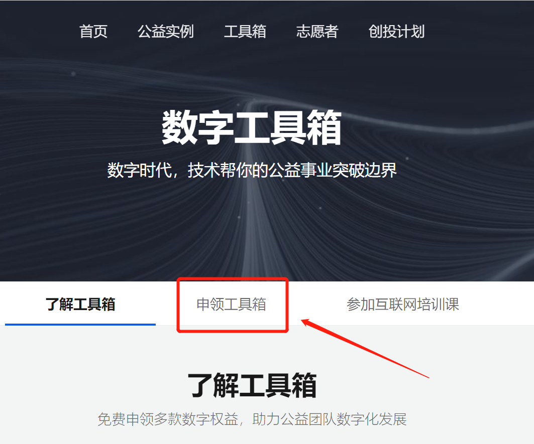 再次登录志愿者平台,申请工具箱,选择公益志愿者平台及其他需要的工具,申请期间可通过管理台-工具箱查看申请进度。