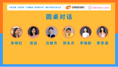 华北电力大学朱晓红教授主持对话,中国营养学会教育培训中心品牌总监底延、北京博能志愿公益基金会秘书长吕敏杰、北京微孝暖夕慈善基金会秘书长郑永杰、北京睦友社会工作发展中心主任李璐龄和营养惠万家项目责任营养师志愿者代表景思涵参与对话