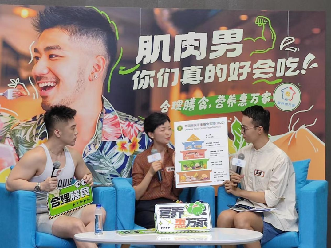 本次直播以“肌肉男,你们真的好会吃!”为主题,探讨合理膳食与运动健身之间的关系。活动现场,博主许大桃儿以自身经验和感受出发,分享了他通过健康饮食进行身材管理的方法。营养师景思涵则仔细讲解了合理膳食的基本知识,针对性地指出目前公众常见的饮食误区。面对线上观众提出的问题,两位嘉宾用生动易懂的语言进行了解答,并给出了适合日常生活的实用性建议。