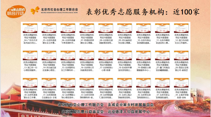 2022年12月1日,北京市社会心理工作联合会发起“首都老年心理抗疫志愿行动(i will志愿者首都志愿行动)”,联合北京惠泽人公益发展中心、北京博能志愿公益基金会及近百家合作伙伴,运用i will中台志愿服务管理体系开展专项志愿服务行动。