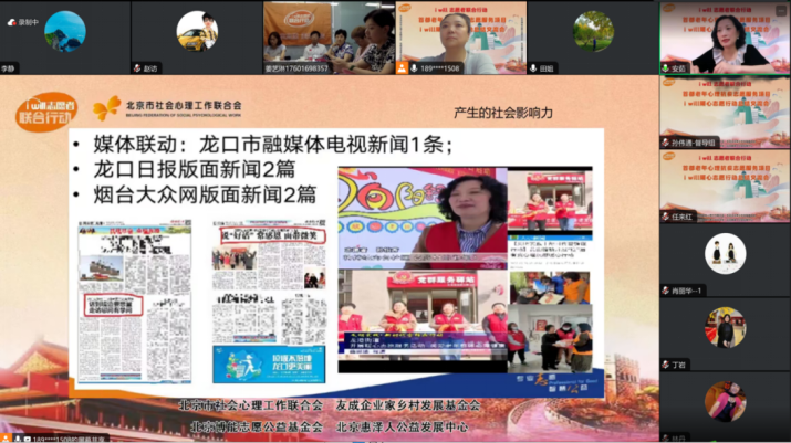 首都老年心理抗疫志愿行动暨i will暖心志愿行动总结交流会在全体参会人员的合影留念中圆满结束,两期心理抗疫志愿行动到此告一段落。志愿服务行动有始有终,i will志愿精神依然在我们彼此间传递,美好的记忆在生命中永恒。