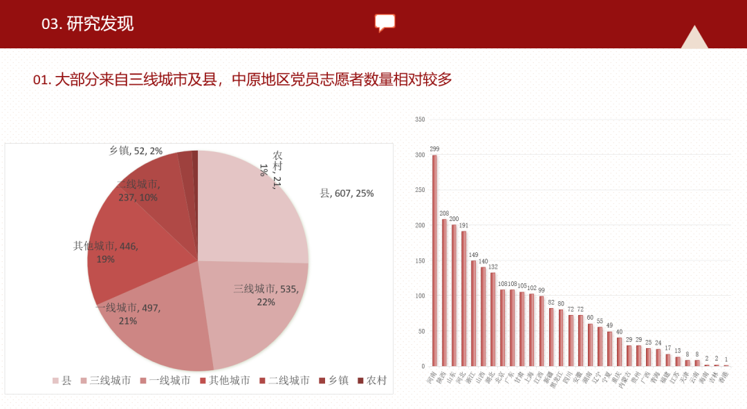 2024年7月,博能基金会资助的中国志愿服务发展指数调研项目在已有指数报告研究的基础上首次聚焦党员志愿者领域,从党员志愿者动机、活跃度等方面描绘出 2023 年党员志愿者的画像及其特征,为党建引领志愿服务提供了数据支撑。