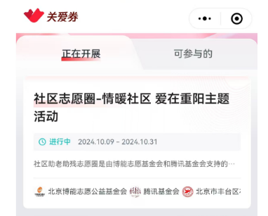 社区助老助残志愿圈项目由腾讯公益慈善基金会支持、北京博能志愿公益基金会主办。项目采用 “人(志愿者) + 技术(志愿服务技术及现代科技) + 资金(对已有服务项目的执行匹配资金和特殊群体的捐赠资金)” 的志愿服务捐赠包模式,旨在通过陪伴赋能相关组织与项目、汇聚社会慈善资源、搭建跨界合作的社区“志愿圈” 以健全社区志愿服务体系、共建和谐社区。