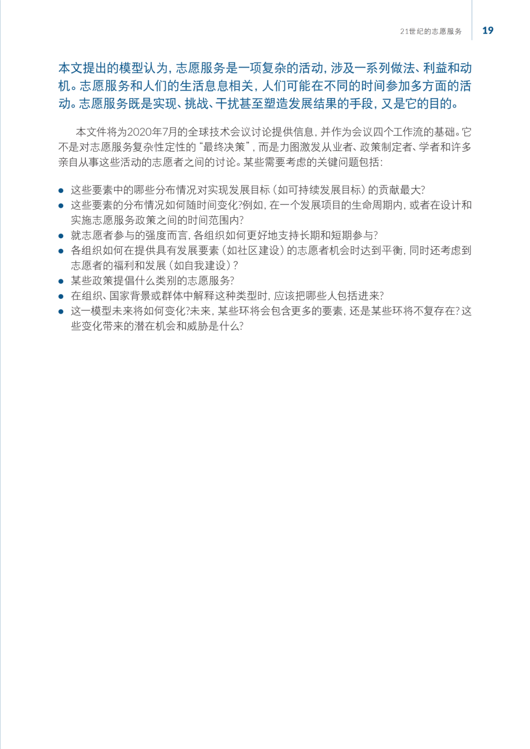 我们希望本文件能为政策制定者、从业者、学者以及广大志愿者提供有价值的见解,并激发关于志愿服务在21世纪的实践和发展的深入讨论。