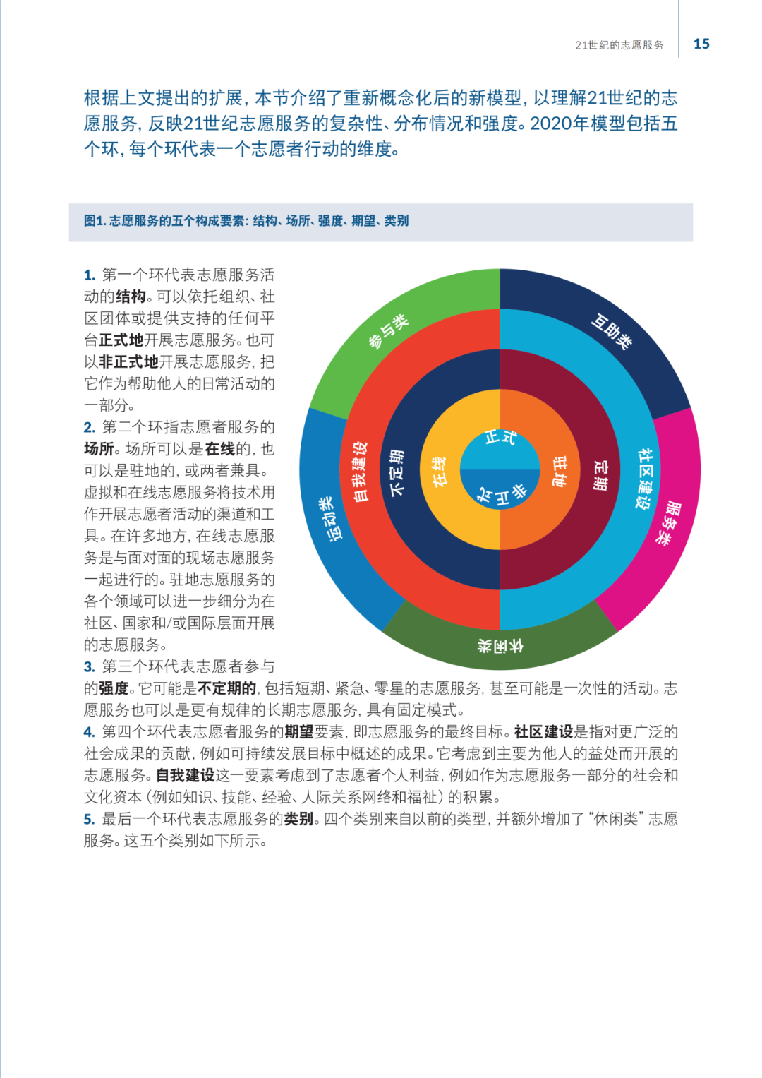 自1999年联合国志愿人员组织(UNV)发布“志愿服务与社会发展”背景文件以来,全球志愿服务的理论和实践均发生了显著变化。本文件回顾并更新了1999年的分析框架,以反映21世纪志愿服务的新趋势和新模式。文件中提出,志愿服务不仅是一种服务交付机制,而且是人类日常生活和社会转型的重要组成部分。