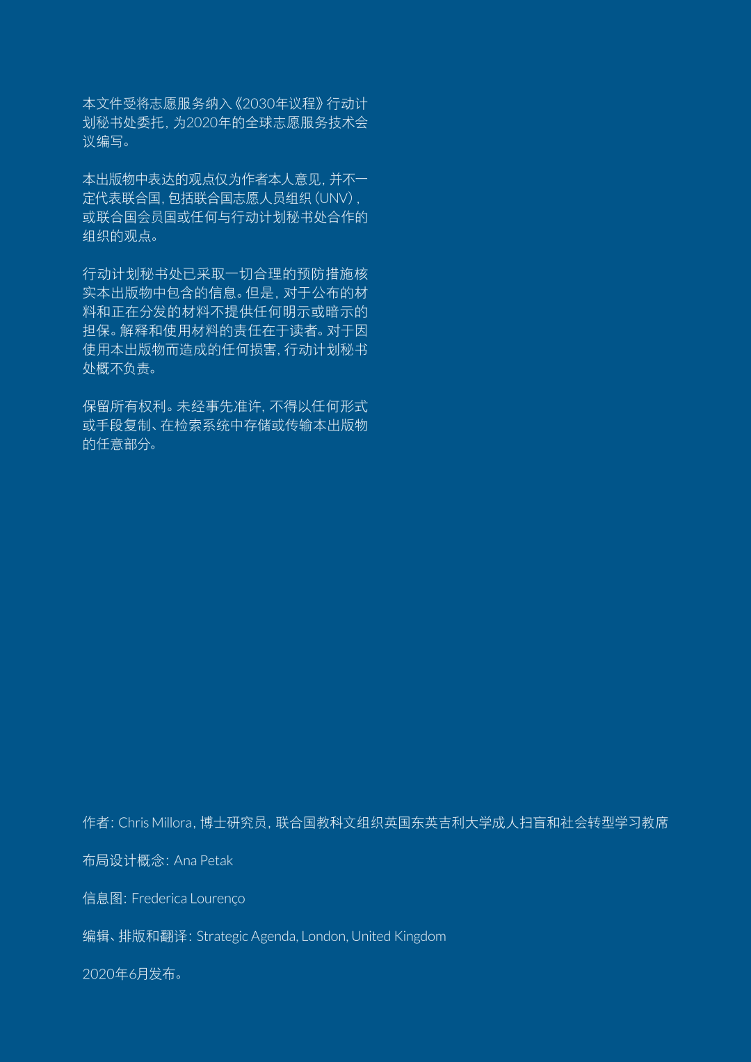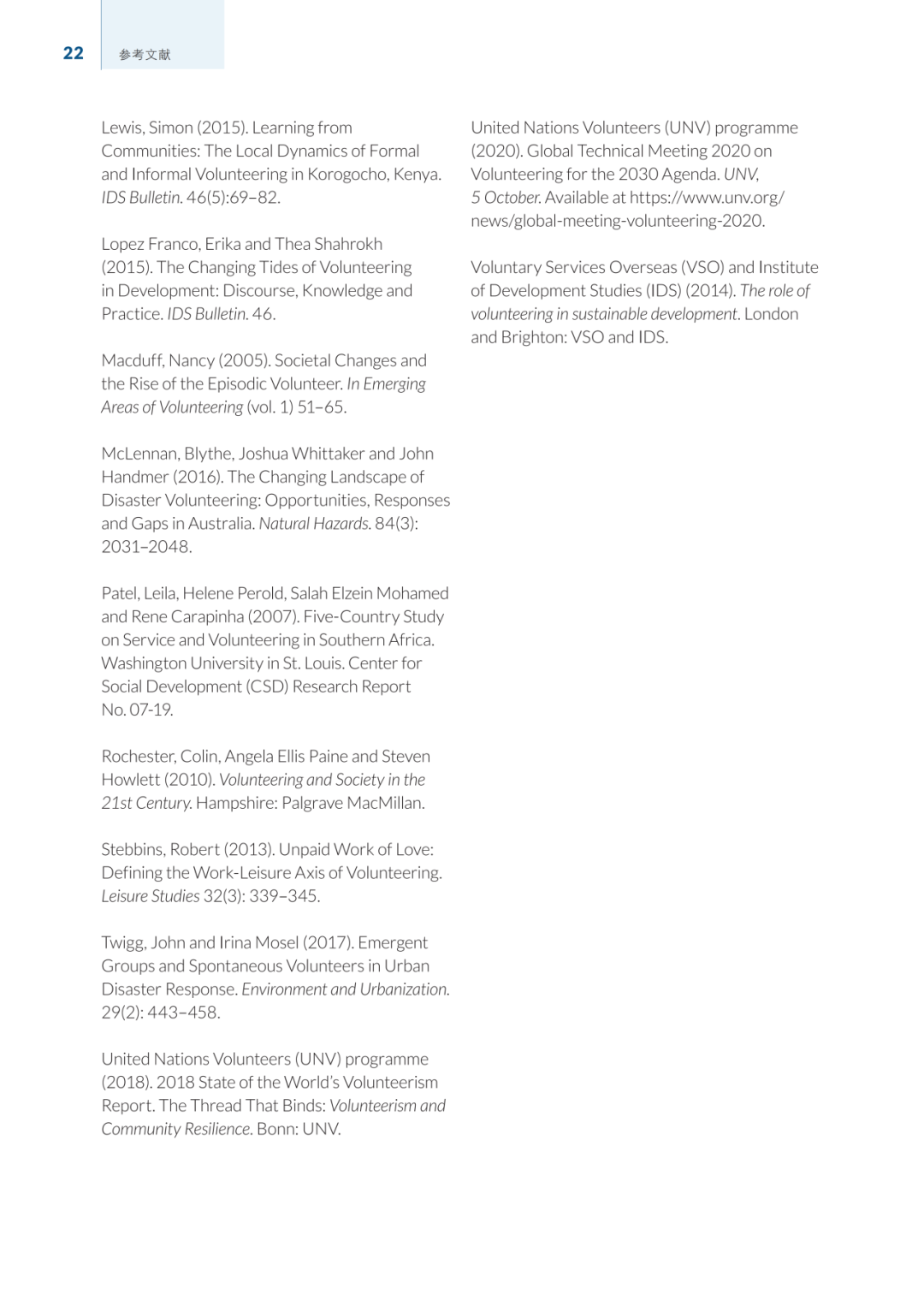 本期分享的文件《21世纪的志愿服务》由联合国教科文组织英国东英吉利大学成人扫盲和社会转型学习教席的博士研究员Chris Millora撰写,旨在为2020年全球志愿服务技术会议提供参考和信息支持。本次会议是将志愿服务纳入《2030年议程》行动计划中的一项重要里程碑,旨在重新构想志愿服务在全球发展中的作用。