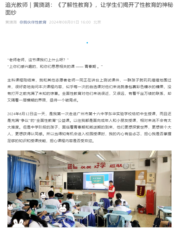 (2) 应用多元服务方式:秉持科学性和系统性,采用专业课程讲授、互动活动等多元服务方式开展性教育,还与“你我伙伴”合作保障专业性,通过调研了解需求,持续优化内容与方式,推动性教育普及提升。