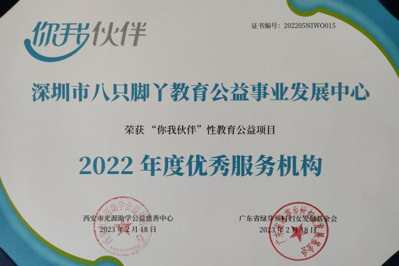 2. 2022年 八只脚丫获“你我伙伴”性教育优秀机构奖