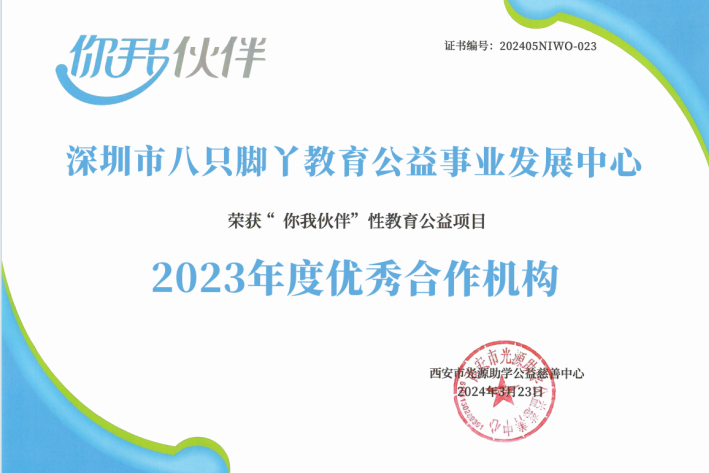 3. 2023年 八只脚丫获“你我伙伴”性教育优秀机构奖